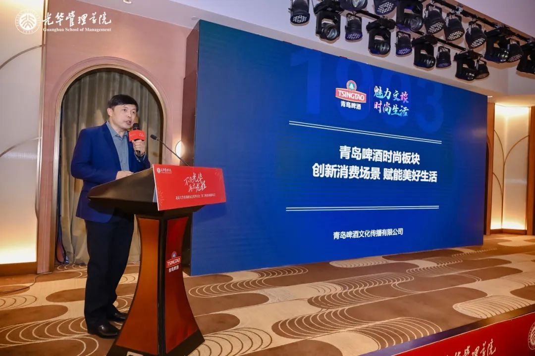 青岛啤酒(西海岸)文旅发展有限公司总经理董方则介绍了青岛啤酒时尚板块、时光海岸酒店、精酿工坊,让同学们对青岛啤酒的发展有了更深入的了解。会后,大家还共同参观青岛啤酒时光海岸度假酒店园区,近距离体验一杯啤酒诞生的全过程。