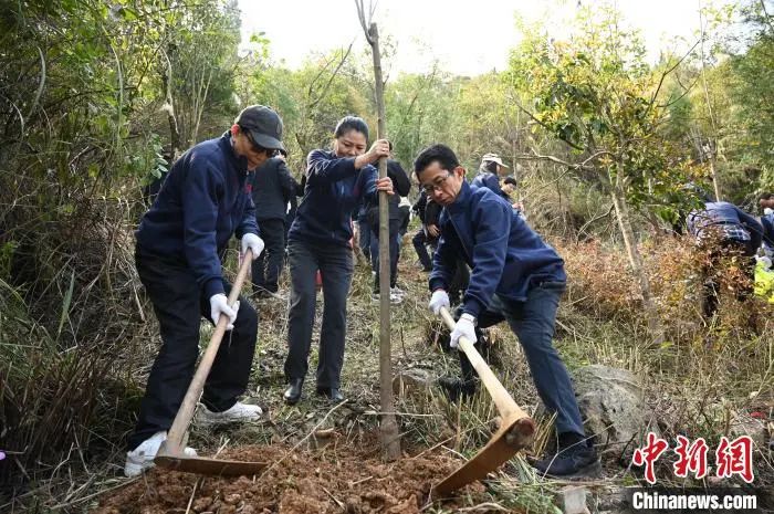 在奉节县永乐镇白龙村一处山坡上,北大校友们拿着铁锹、锄头、水桶,开始植树。这是北大校友连续14年坚持参加该项活动。大家热情高涨、相互配合,有的挥锹铲土、有的提水浇灌,一片热火朝天的劳动景象。经过大家的共同努力,在10余亩山坡上新栽种的500余株栾树、柏树树苗昂然挺立,为山坡增添了一丝丝绿意。