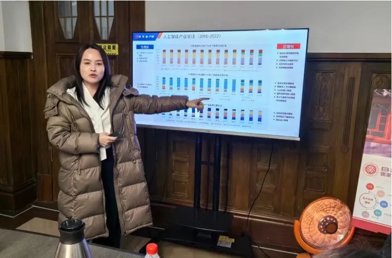 邹倩作为新校友代表作“大数据视角——2023京津冀发展协同”主题分享。邹倩通过数据,梳理出重点产业京津冀7城各自的强链和弱链行业。以天津产业链大数据梳理为例,天津在石化、新能源汽车、生物医药和新一代信息技术四大产业上,不论是企业数量占比,还是其中高资企业比重,非常多的产业门类是居35城中上。通过梳理产业链数据,邹倩为校友企业找到所在城市的区属优势产业门类,使校友们深受启发。
