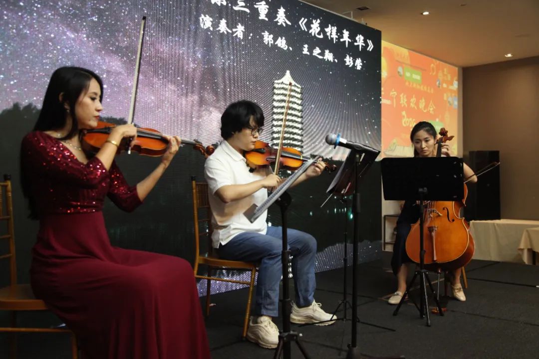 未名南洋乐团自成立以来,已经发展成新加坡校友会中较大的活动群,其中几位团员还定期参与本地百年社团“吾庐”的合唱团排练。在今天的盛会中,乐团展示了两首最近的排练成果。