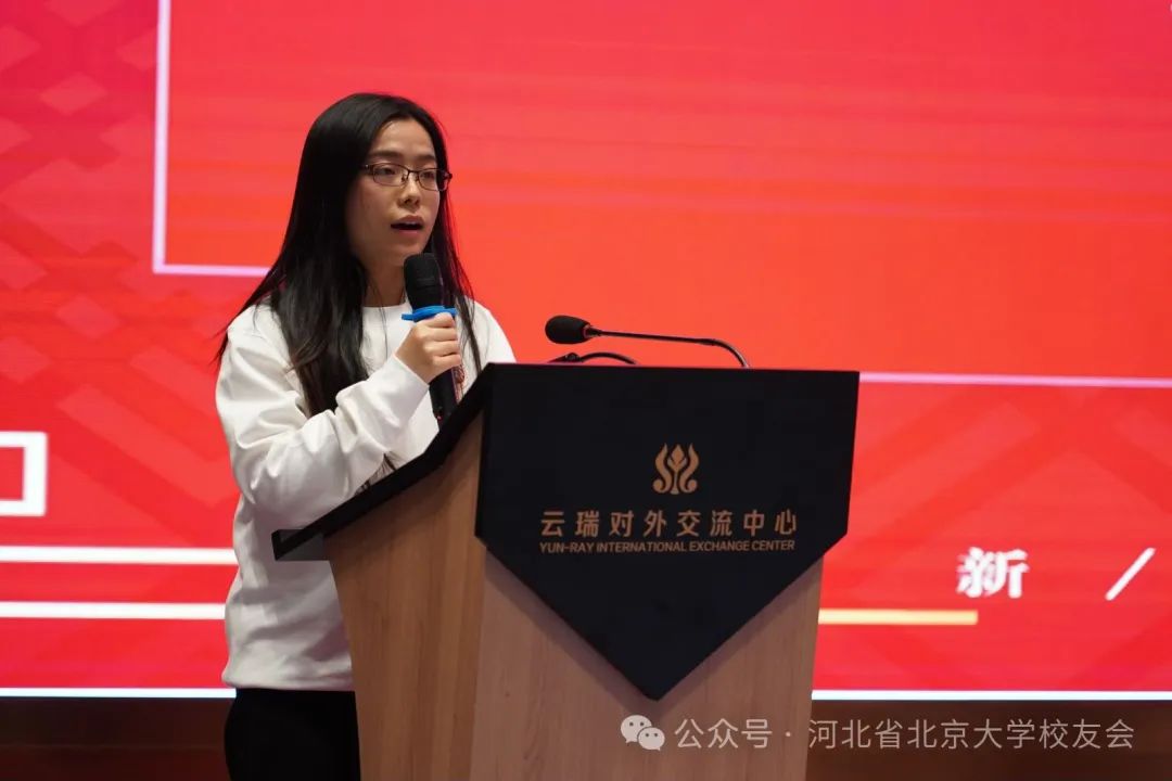 2023届选调生校友代表柳丹分享了选择河北、筑梦燕赵的理想初心,介绍了2023届在冀北大选调生校友的基本情况。柳丹表示,作为一名校友晚辈和选调新兵,未来一定以校友前辈为榜样,传承北大精神,勇做新时代的奋进者、开拓者。