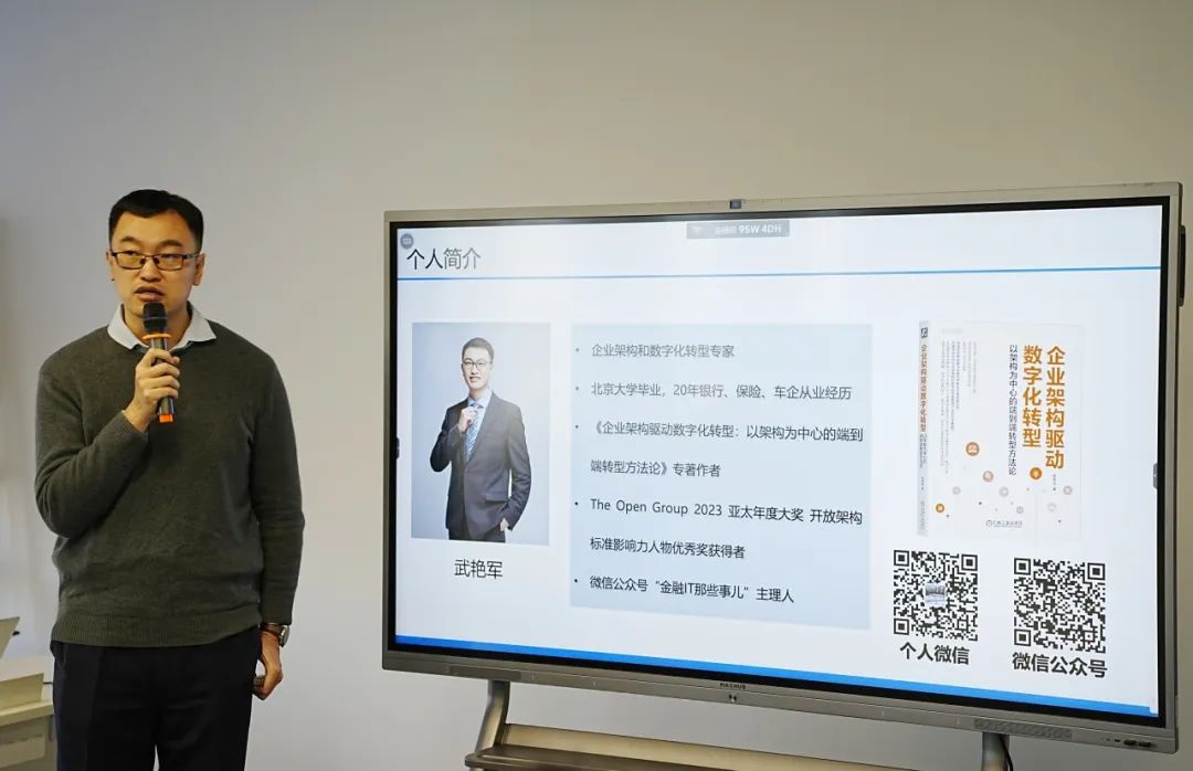 一汽-大众首席企业架构师武艳军作《企业架构驱动金融机构数字化转型》主题分享。企业架构是数字化转型的底层方法论,它包括业务架构、IT架构、架构治理和实施路径等四部分,涉及到对金融机构从战略层、架构层到业务层的全面梳理和优化。企业架构是业务和IT之间的桥梁,保证IT的战略一致性,使金融机构更准确地利用云计算、大数据、人工智能等新兴技术,顺利实现数字化转型,提升自身的竞争力和市场地位。