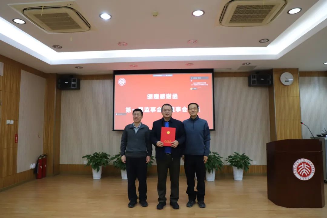 赵东岩书记、汤帜所长代表北京大学王选所向第一届理事会、监事会成员颁赠感谢函。
