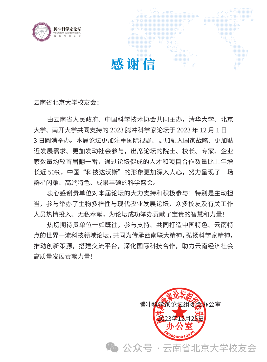 2023年12月30日,云南省北京大学校友会在云南师范大学一二一西南联大校区田家炳教育书院2楼1号会议室举办“燕园之滇2024迎新年活动”暨2023年下半年理事会扩大会议。