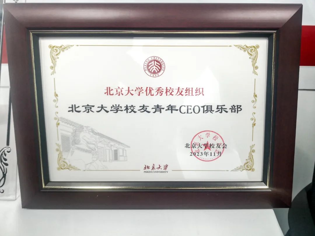 2023年,北大校友青年CEO俱乐部被评为“北京大学优秀校友组织”,王胜地理事长荣获“北京大学优秀校友工作者”,张天一副理事长、任永亮执行理事荣获“北京大学优秀校友”,张金荣副理事长、肖哲执行理事荣获“北京大学校友工作贡献奖”,获得了北京大学校友会的认可与肯定。感谢每一位支持者和帮助者,正是有了你们的支持和信任,北大校友青年CEO俱乐部才能勇往直前。