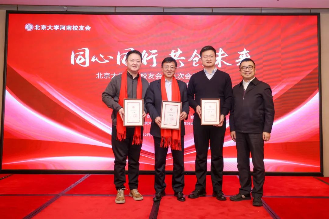 会议期间,李文胜代表北京大学校友会向河南校友会颁发2019-2022年度“北京大学优秀校友组织”获奖证书,并向获得2019-2022年度“北京大学优秀校友”“北京大学校友工作贡献奖”“北京大学优秀校友工作者”的张超、代冲、王留义3位校友颁发获奖证书。