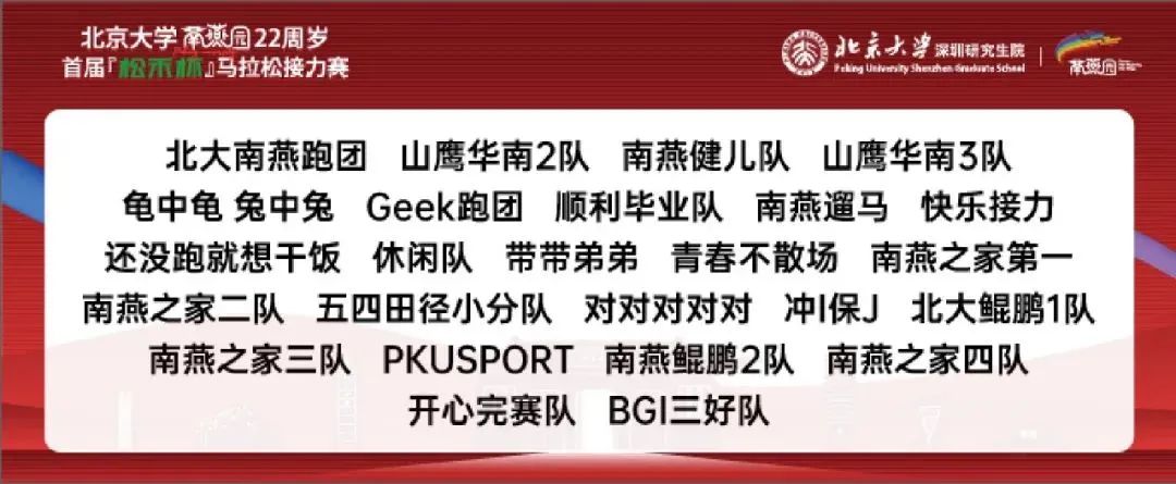 本次北京大学南燕园首届“松禾杯”马拉松接力赛是深研院组织大型校友体育赛事的首次尝试,也是深研院加深与湾区北大校友链接、服务湾区北大校友的重要体现。未来,深研院将充分发挥校园优势,更好地凝聚和服务湾区北大校友,也邀请校友们一道,共建共创南燕的美好未来。
