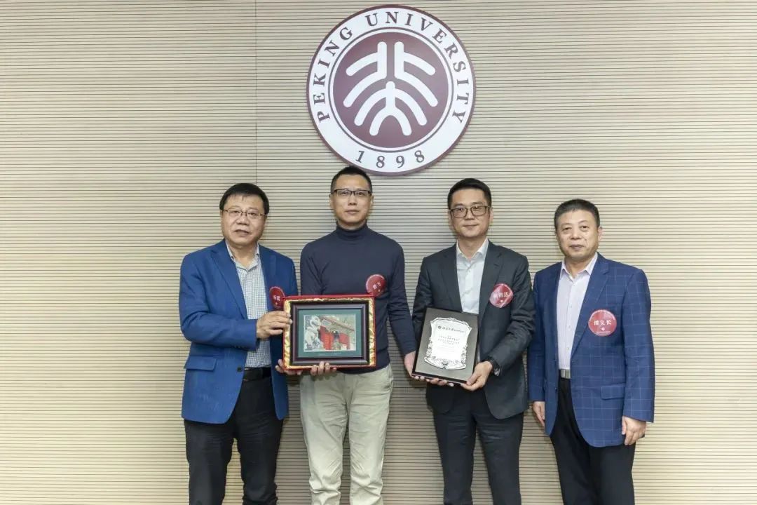 为答谢校友企业的捐资善举,会上举行捐赠答谢仪式。由谢清送校友联合创立的广东阿尔法律师事务所,向深研院基金会捐资设立“北京大学国际法学院学生职业发展基金”项目,这是深研院全日制校友首笔高达100万的现金捐赠,资金用于支持国际法学院职业发展中心的建设、学生职业发展相关课程和讲座的开发建设、校友发展等工作。谢清送校友在发言中提到,从在校期间到毕业至今,从公司事业发展到个体的公益参与,他都从深研院获得了源源不断的支持,他希望借此捐赠回馈母校发展,也为学弟学妹们的职业发展提供助力。谭文长向谢清送校友颁发北京大学深圳研究生院特别贡献奖,杨震向广东阿尔法律师事务所代表曾飞校友颁发纪念礼物。