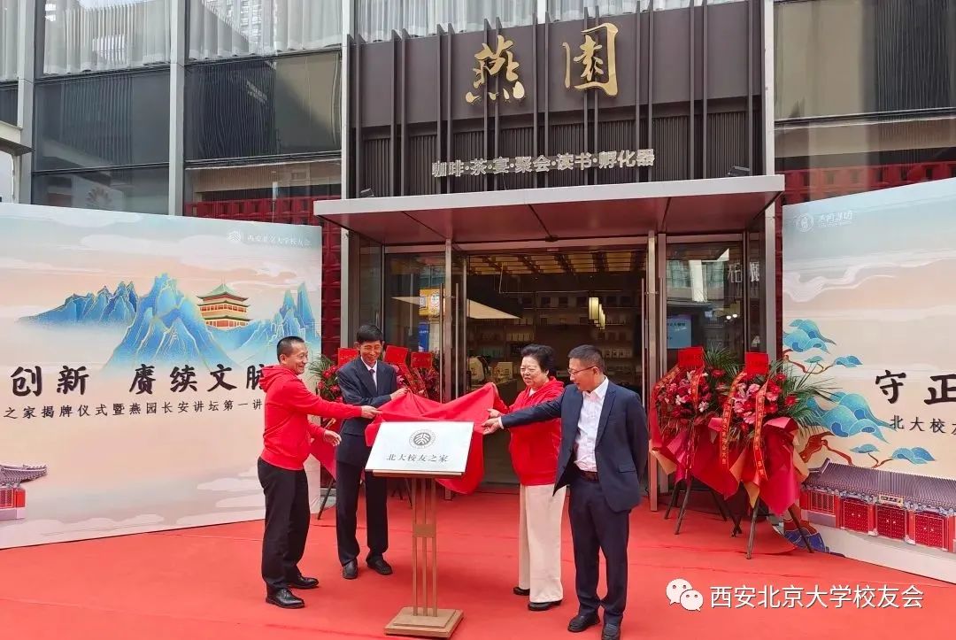2023年10月27日,西安北京大学校友会“北大校友之家”揭牌仪式暨长安讲堂首期讲座在西安城发中心一楼举行。西安城发中心一楼原名为“燕园”,如今,西安北京大学校友会(以下简称:西安校友会)正式授牌“燕园”成为西安校友会“北大校友之家”。北京大学历史系教授博士生导师、中共中央统战部机关党委原常委、九三学社中央原中共书记岳庆平,陕西省劳模工匠协会会长、北大校友兰新哲,西安校友会副会长兼秘书长杨彬、副会长苏联菊,西安南开大学校友会副会长贾人民,上海交通大学陕西校友会副会长兼秘书长张玉,西咸新区管委会副主任韩娜,西安市人民政府原副秘书长宓维新,西安经济技术开发区原常务副主任张保中,燕园集团副总裁、西北区域董事长苏庆华,西安城市发展集团项目总监张良成,燕园集团西北区域公司总经理苗浩,西安市淮安商会会长邓奎等领导和嘉宾出席本次活动。
