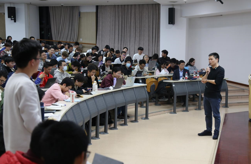2023年11月17日晚上,北京大学信息科学技术学院第十七期“知存讲座”在理科教学楼208教室顺利举办。信息科学技术学院1996级院友,北京唱吧科技股份有限公司、开飞创始人兼CEO陈华受邀分享,主题为“XR产业的变化与机会-唱吧开飞的探索与实践”,400余名师生到场聆听。活动由北京大学信息科学技术学院副院长王润声主持。