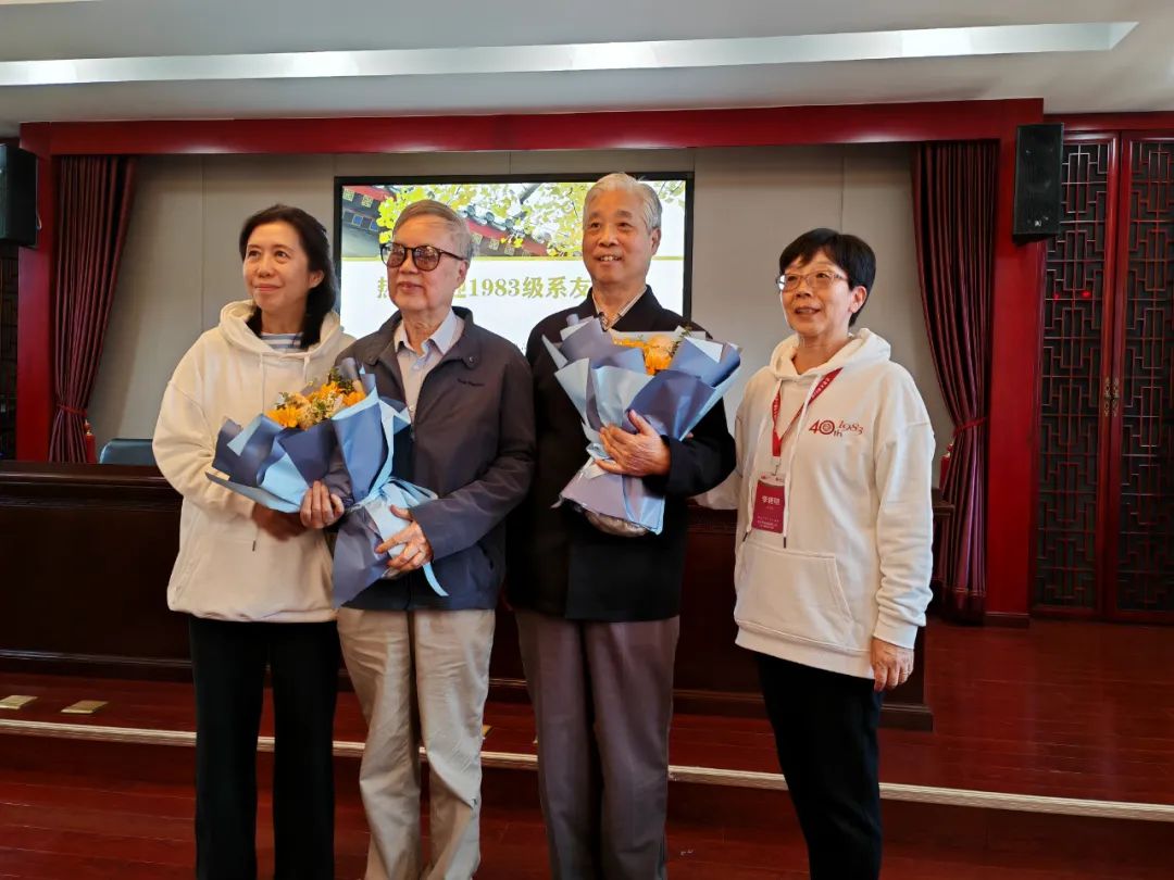 恩师情,永难忘。83级系友代表向两位老师献花、致谢。