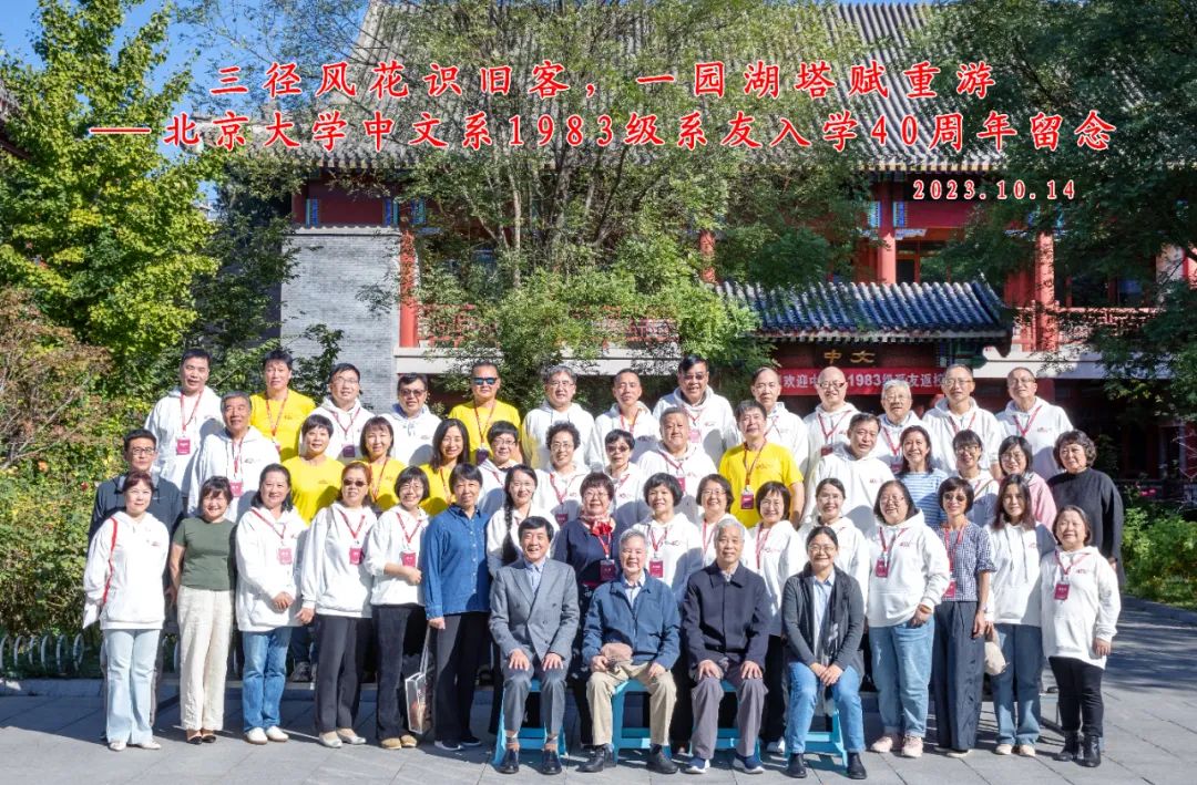 2023年10月14日,北京大学中国语言文学系(以下简称:中文系)1983级40余名校友返回母系,欢聚一堂,畅叙雅谊。1983级文学班班主任、北京大学语文教育研究所创始所长、统编语文教材总主编温儒敏,1983级任课教授陈德礼、曹文轩,中文系党委书记、系友会常务副会长贺桂梅出席本次活动。活动由1983级文学班校友、北京大学中文系教授孔庆东主持。