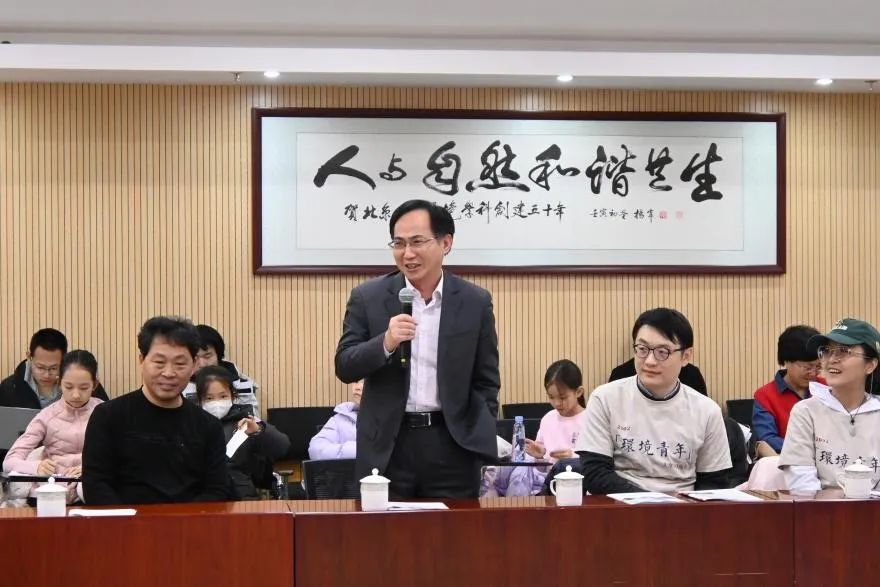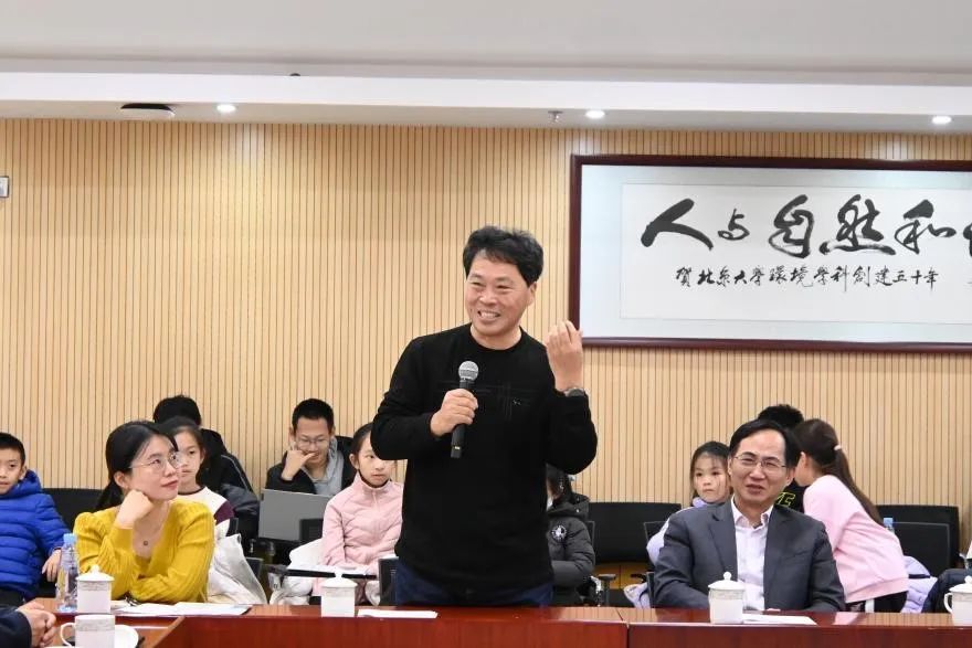 2023年11月18日下午,北京大学原环境学院2002级本科生校友集体返校,20余位校友携家属在环境大楼B121报告厅与环境科学与工程学院师生进行座谈。座谈会由环境科学与工程学院环境管理系主任戴瀚程主持,梅凤乔、赵志杰、韩凌、王浩等教师代表及2023级本科生学生代表参加。
