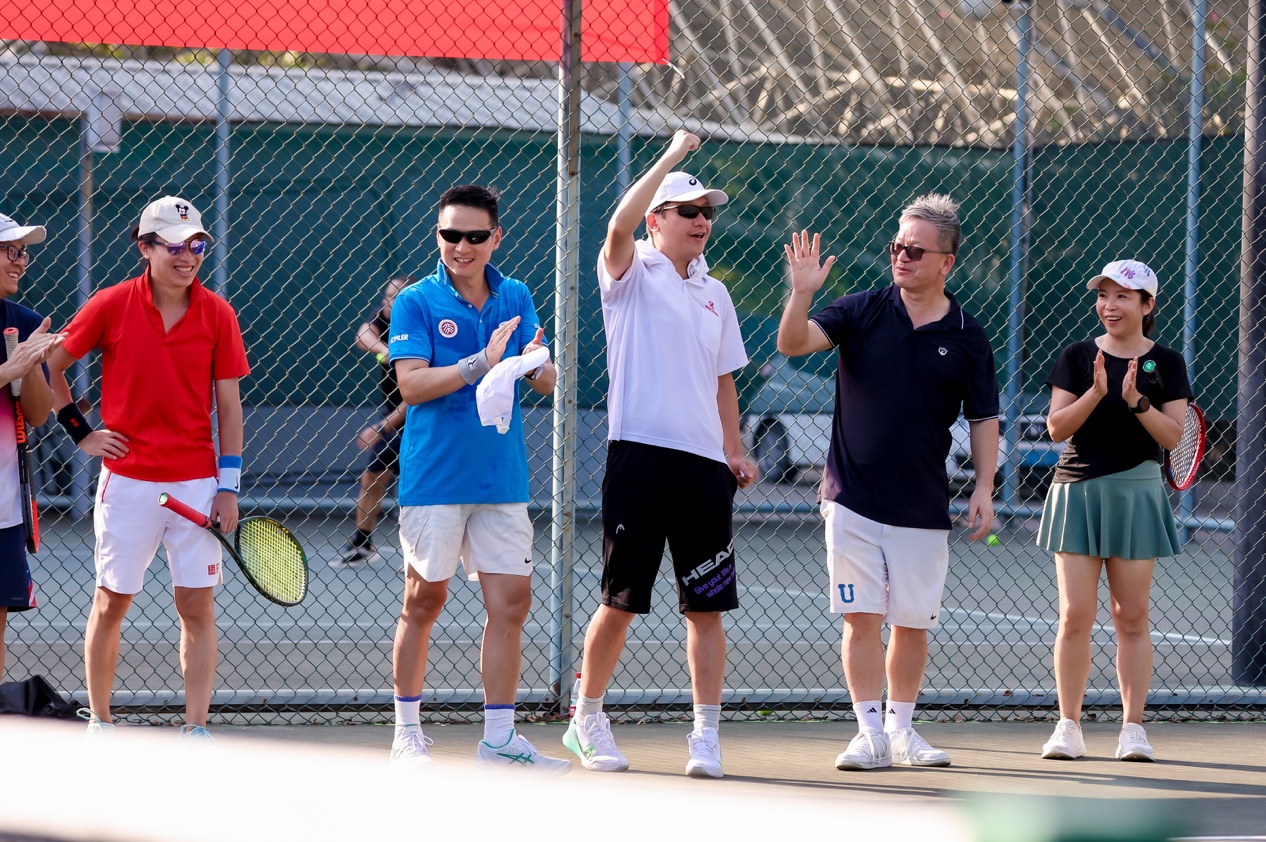 随着日影西斜,比赛很快接近尾声,此时,输赢已经不再重要,更重要的是洋溢在在场每个人心中的燕园情。校友和师生相聚南燕,以球会友,不仅展示了他们精湛的网球技术,体现了他们积极向上、勇攀高峰的精神风貌,也拉近了粤港澳大湾区北大校友和师生的距离,加强了校友凝聚。