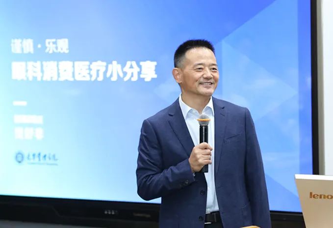 北京小树眼健康科技有限公司董事长樊舒非校友在分享“眼科消费医疗”时,回顾了眼科发展的黄金年代。他指出,近几年来,角膜塑形术和视功能康复训练新技术推动我国眼视光行业快速崛起,儿童青少年视光门诊方兴未艾。历经小树眼科18年发展,他进一步指出:利用“线上+线下”的数字化医疗服务等手段,实现门诊与家庭相结合的视觉训练,将是未来视光门诊的重要机遇。