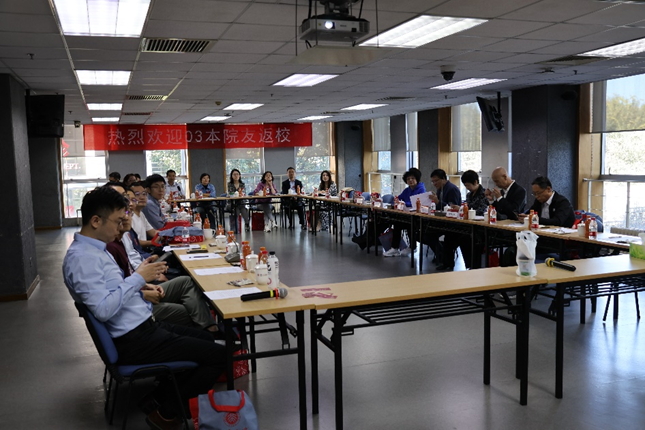 金安平看到如今院友们在各自的岗位勤勤恳恳工作,取得了可喜的成就,由衷地为大家感到自豪,同时表达对院友返校的欢迎。李海燕则说,03本的院友们是学院发展的重要见证者,她非常高兴看到大家回来。她希望今后自己能够和学院的老师们一起更好地为大家提供服务,提供工作的助力,让学院与院友们相互支持,相互温暖。