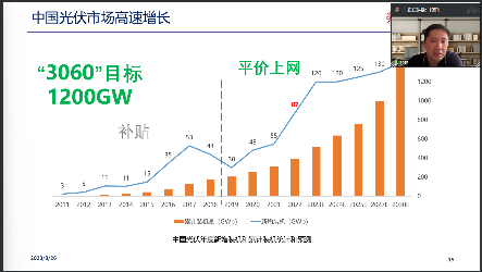 在第二部分和第三部分,段野分享了全球及中国光伏产业的发展情况。在光伏发电实现平价上网的大背景下,全球光伏市场蓬勃发展,2022年全球光伏装机突破1TW,其中中国装机量占首位。经计算,光伏发电在控制碳排放方面发挥了重要作用,在新增可再生能源发电装机上,全球各个国家的光伏装机占比持续增长。我国光伏产业近十年增长了近20倍的市场容量,在国家政策的支持下向好发展。过去五年,我国光伏制造端和应用端发展迅猛,已成为全球最大的光伏市场。在光伏技术创新方面,我国技术研发、制造和应用均居世界领先地位,众多新技术层出不穷。