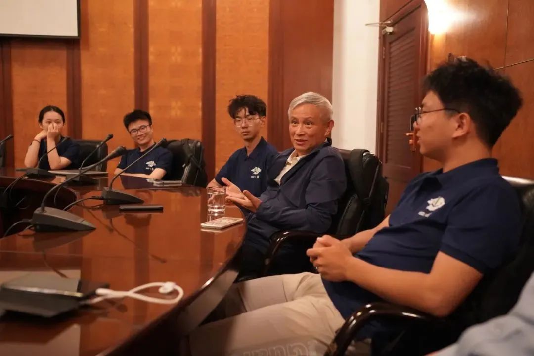 晚饭过后,周其仁邀请远大科技集团的两位青年技术骨干进行经历分享,同学们也根据他们的分享对于感兴趣的问题进行了进一步的提问。最后,在周其仁的带领下,同学们共同开展了总结复盘。周其仁将中国发展置于世界范围之中,比较了中国与西方发展模式的差异,提出中国作为后发国家,缺乏原创性科技突破,而往往着力于“1到N”的产品改进完善。远大科技集团在改革开放初期便秉持创新改变世界的理念,投入大量资本进行创行研发,取得了多领域、一系列的原创性技术突破,其“想到了造”而非“看到了造”的发展模式值得深入研究。