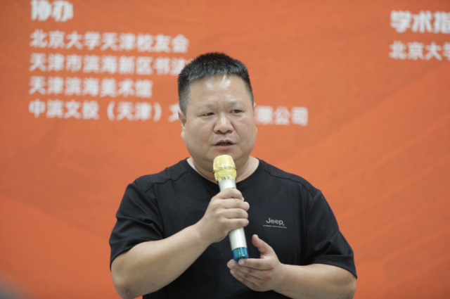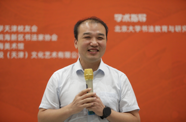接着,吴志攀对滨海新区各方对此次书展的大力支持诚表谢意,并表示能有机会来到滨海新区,与当地的书法爱好者交流学习,自己非常激动。京津冀三地历史悠久,文化底蕴厚重,书法名家云集,通过此次展览向前辈老师致敬,向三地书法同道请教,与书法爱好者联谊,无疑是为京津冀文化圈建设添砖加瓦。吴志攀也诚挚邀请滨海新区的书法爱好者有机会能到北京大学举办展览,共续翰墨之缘。