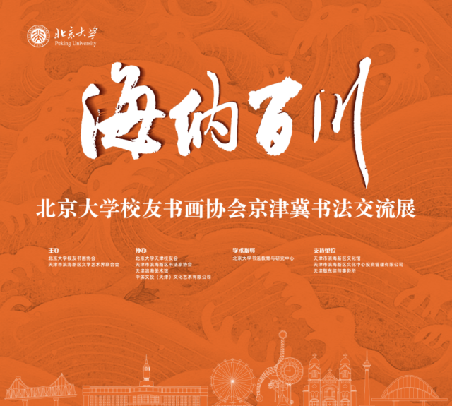 2023年8月26日, “海纳百川——北京大学校友书画协会京津冀书法交流展”在天津滨海美术馆开幕。展览由北京大学校友书画协会发起、组织、倡议,首展已于2023年5月12日在北京天通苑文化艺术中心举办,第二展于2023年6月22日在河北省霸州市益津书院举办,本次展览则是交流展的第三站。本次展览旨在加强京津冀三地文化交流,为三地书法作者提供了切磋的平台,为广大书法爱好者提供了学习观摩、研讨交流的机会,并展出了三地书法作者近百幅优秀作品。