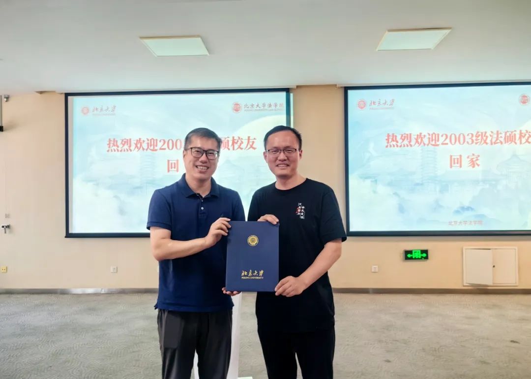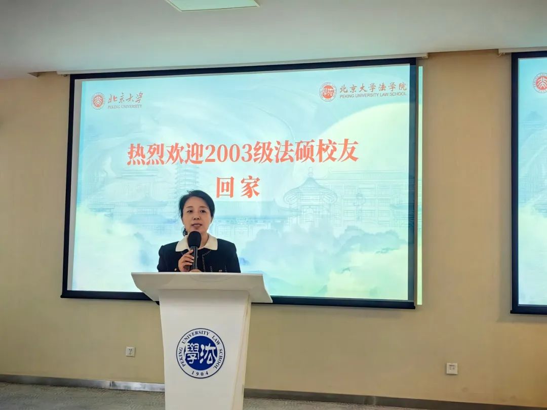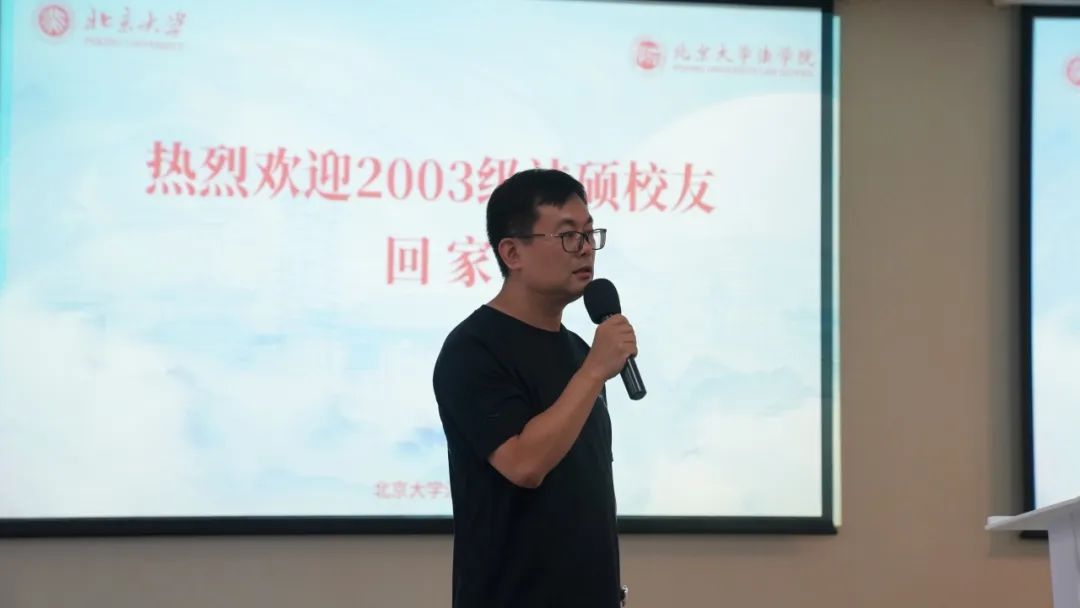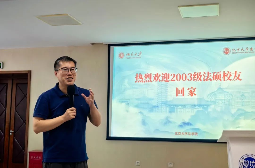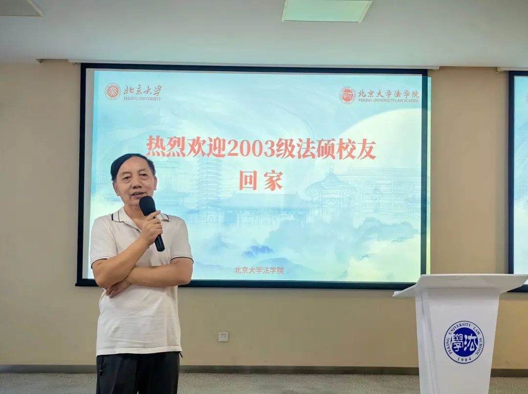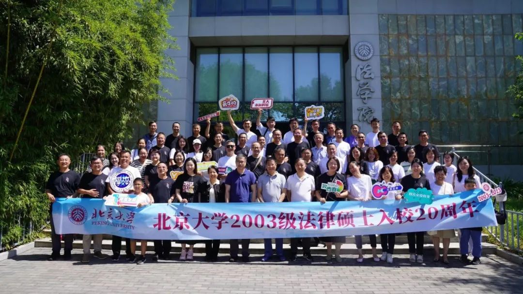 2023年8月19日上午,北京大学法学院2003级法硕校友入学20周年纪念活动于凯原楼80级教室顺利举办。北京大学法学院党委副书记路姜男,法学院刘剑文教授、楼建波教授,校友工作办公室主任党淑平、副主任鲁昕鑫,2003级法硕校友及亲属80余人参加活动。徐海伦校友担任活动主持人。
