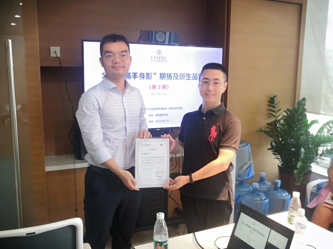 交流完毕,牟世勇对赵勇的精彩分享表达了诚挚的感谢,并代表北大金融校友联合会为其授予感谢状。活动最后,所有参会人员进行合影留念。