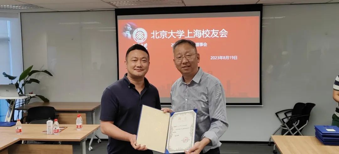 会议的第二项议程是王宇代表北京大学校友会为上海校友会的理事们颁发理事证书。
