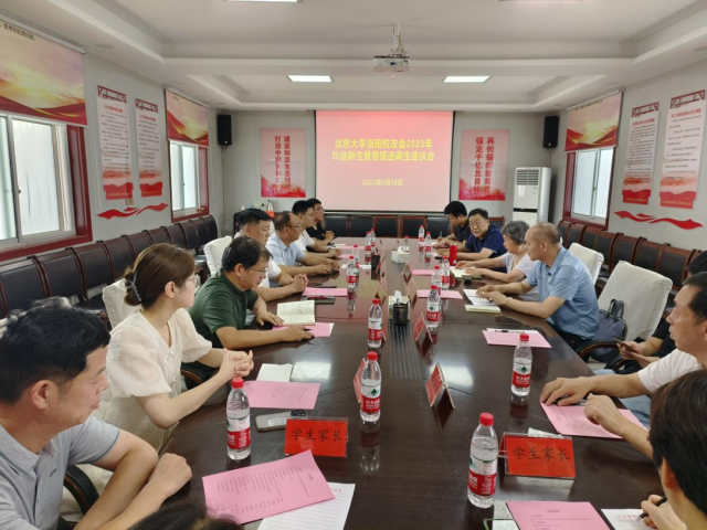 2023年8月16日下午,北京大学洛阳校友会在洛阳市偃师区邙岭镇政府会议室举办2023年欢送新生暨看望选调生座谈会。洛阳市委组织部人才工作三科科长朱武欣,偃师区邙岭镇人大主席秦朝阳,区教体局副局长武建国,偃师高中副校长刘利斌,北京大学洛阳校友会副会长兼秘书长刘晓鹏、副秘书长陈巍、副秘书长王龙刚,爱心企业家陈治功,北大2023级新生张乐天、许璐凡及其家长,在邙岭镇锻炼的2022届选调生校友刘恒出席会议。会议由北京大学洛阳校友会名誉副会长史新伟主持。