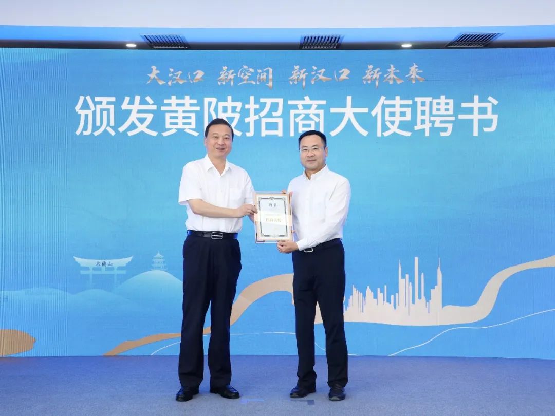 聘任仪式上,张劲向刘萌颁发“黄陂区招商大使”聘书;何建文与刘萌共同为武汉校友经济促进中心揭牌。