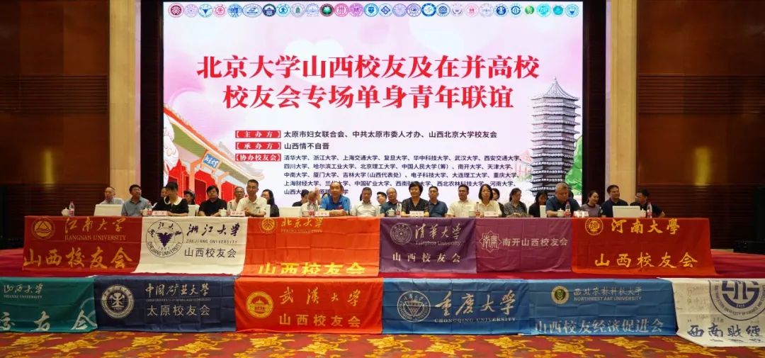 2023年8月13日,由太原市妇女联合会、太原市委人才办、山西北京大学校友会主办,山西情不自晋承办,以及清华大学、人民大学、复旦大学、南开大学、武汉大学、上海交大、厦门大学、山西大学等省内外二十七所院校的山西校友会联合协办的“北京大学山西校友及在并高校校友单身青年联谊”专场活动在省城太原并州饭店举行。