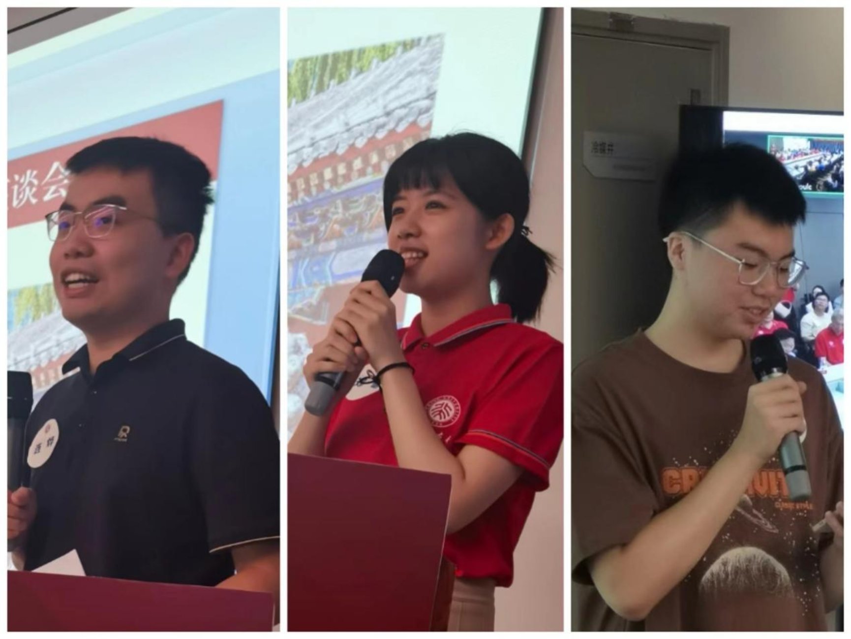 随后,与会新生校友们依次登台自我介绍,朝气蓬勃的面容,睿智生动的言辞,不时引发热烈的掌声。陈佳成、刘佳艺、孙峥琦、周绎豪等四名新生代表发言,他们字字珠玑,文采斐然,分享自己寒窗数载、圆梦未名的经历,以及对未来燕园学习生活的渴望和憧憬。