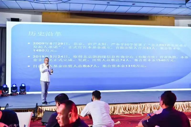 活动最后,E07基金会会长曹榆做了阶段性的总结报告,并向那些自E07基金会2009年创办后为基金会做出过重大贡献的校友们颁发奖牌。侯志宁校友认为现在是百年不遇的大变局,具有许多的不确定性,“我们能把握的确定性,就是善良、友谊和亲情。今天和E07同学的相聚,让我们感受到了这个不确定性的年代里的确定性”。