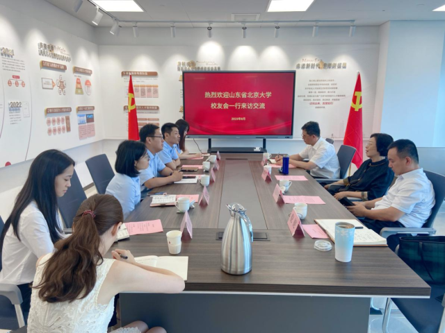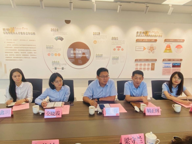 2023年8月3日下午,山东省北京大学校友会副会长兼秘书长梁守兰、山东自贸试验区济南片区管委会副主任郭依坤、山东省科学院研究员薛富民校友等一行四人,到山东人才发展集团有限公司走访,就如何加强交流与合作、服务山东人才发展进行了座谈交流。山东人才集团人才服务中心副主任王许等参加了座谈会。