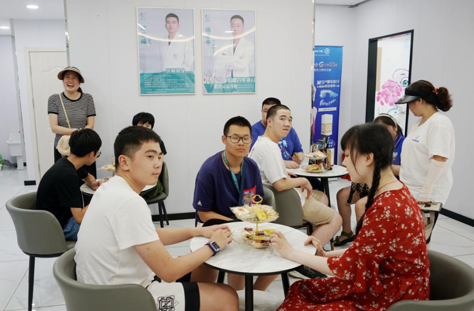 在经过前期的了解和细心的准备,2023年7月28日下午,玉心口腔诊所对外停业,为9名爱纳孤独症儿童提供了专场医疗服务。从布置环境、准备食物到互动活动,都是符合孩子们“口味”的,正是因这些细节以及医护人员的爱意,让孩子们慢慢放下了戒备,配合医护人员检查牙齿、洗牙、补牙,完全超出预期效果。