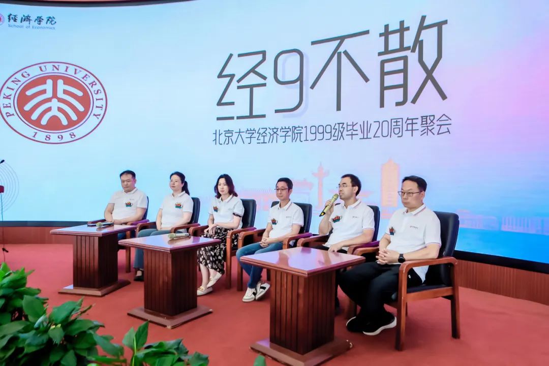 在其后的交流活动中,任课教师代表叶静怡、张延、郭研、胡涛老师深情回顾了与99级本科同学的师生情缘;吕随启和方敏两位老师也专程发来祝福视频。接着,返校校友代表举行圆桌论坛,分享自己过往的人生经历,共同追忆青春,感悟过往,寄语未来。晚间,校友还进行了联谊活动,续写“经久不散”的北大经院情。