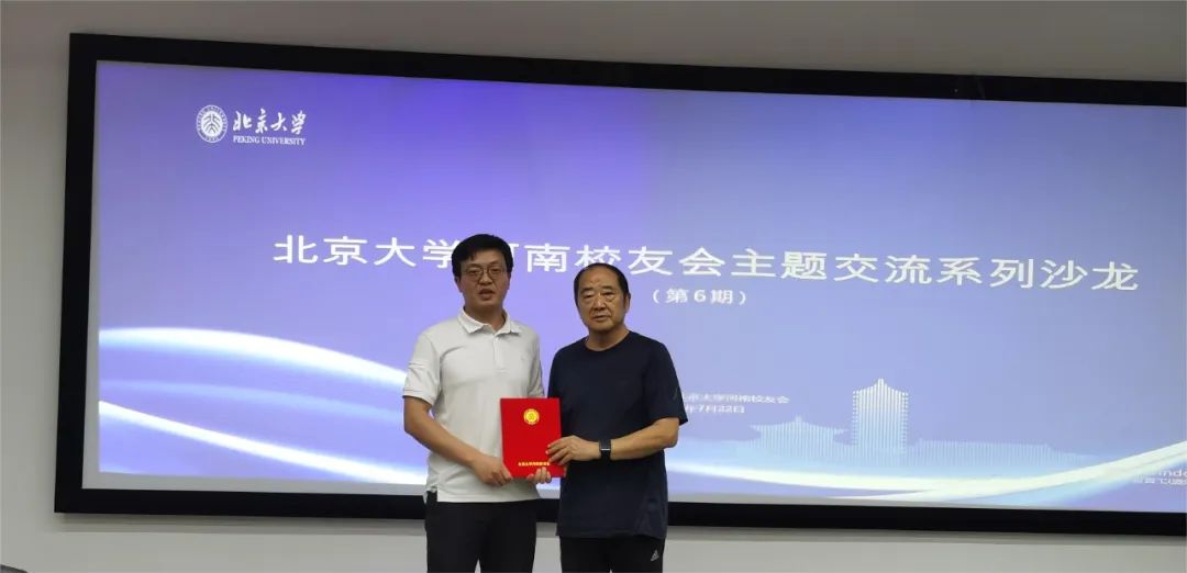 活动期间,北京大学河南校友会党支部书记杨锋代表校友会向王勇博士颁发智库专家聘书。北京大学河南校友会将坚持“服务校友、服务母校、服务社会”的办会理念,努力开展更多高品质的学习交流活动,为校友们提供更加优质、精准的服务。