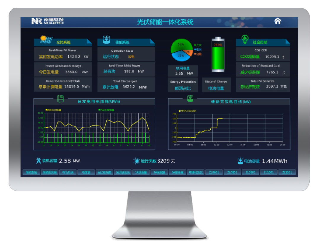 作为全球领先的能源控制和管理解决方案提供商,为践行绿色低碳科技理念,南瑞继保在公司智能化电气装备产业园园区内建设了智能微网示范项目。项目自投入运行以来,共累计发电22.3GWh,储能系统累计放电3.4GWh,总收益接近3000万元。减少二氧化碳排放11666吨,减少标准煤4695吨。“微电网运行控制保护系统”也入选南京市创新产品。