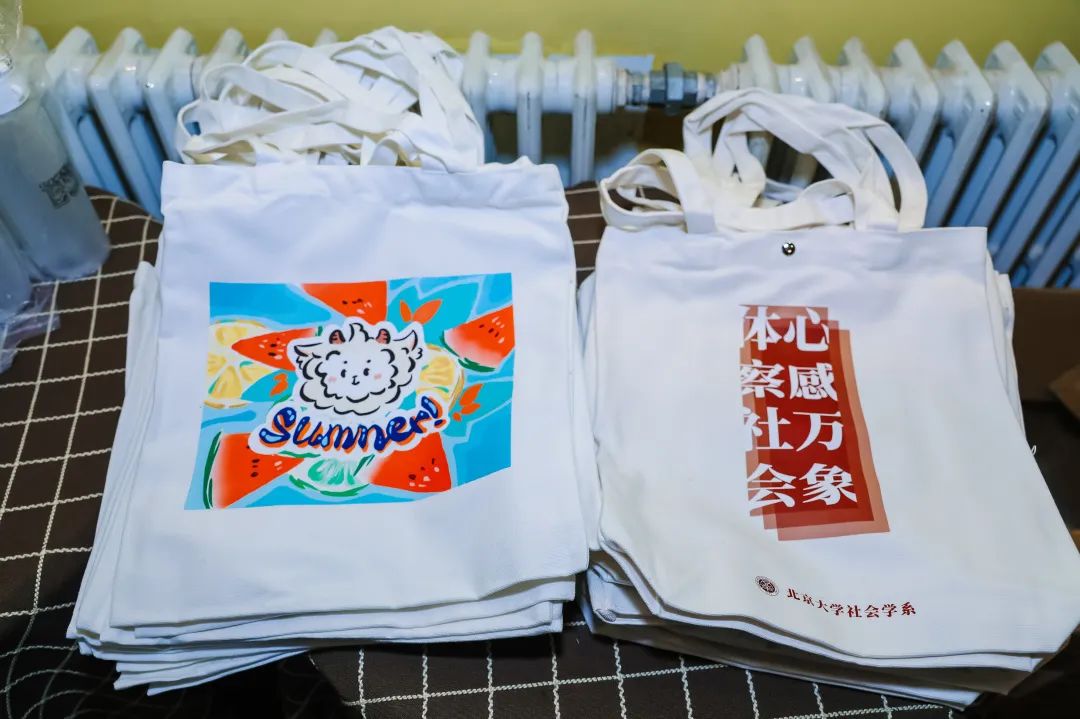 时光荏苒,情谊永存,重回母系的系友们观看了40周年系庆时拍摄的纪念视频,看着视频中一张张熟悉的老教师面孔,大家纷纷讲起了自己记忆中的老师们,讲起了三十几年前在燕园中度过的美好时光。母系为返校的系友们准备了社会学系重建四十周年系庆纪念手册、新创办的《北大社会学刊》第一辑以及系徽等代表性的文创纪念品,八七级系友们也向系里赠送了专为此次活动设计的文化衫、帆布袋等纪念品。大家欢声笑语地交谈着,诉说着离别的思念与重聚的喜悦。