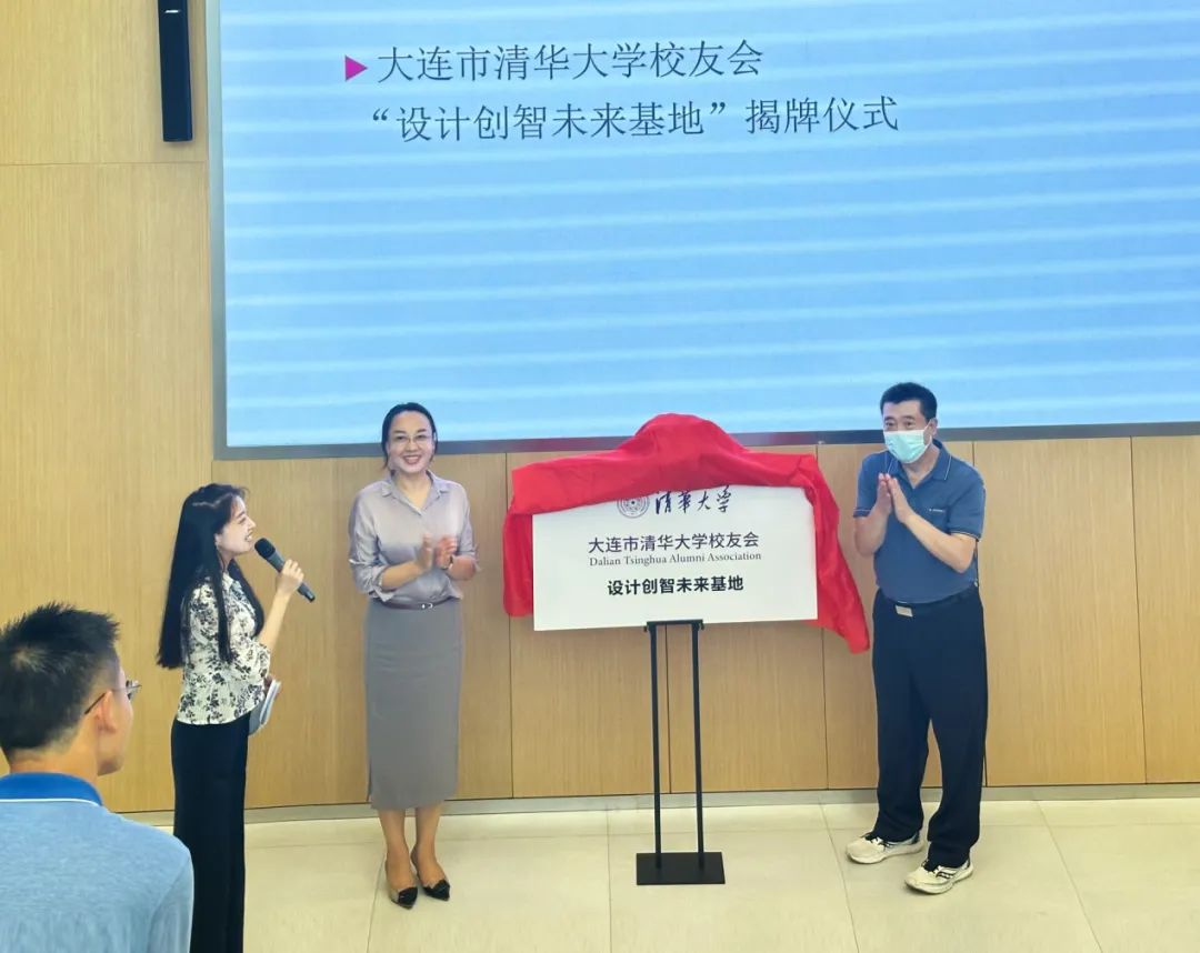 大连市清华大学校友会“设计创智未来基地”揭牌仪式在两会校友的见证下举行,由李汉光和王丽红共同揭牌。