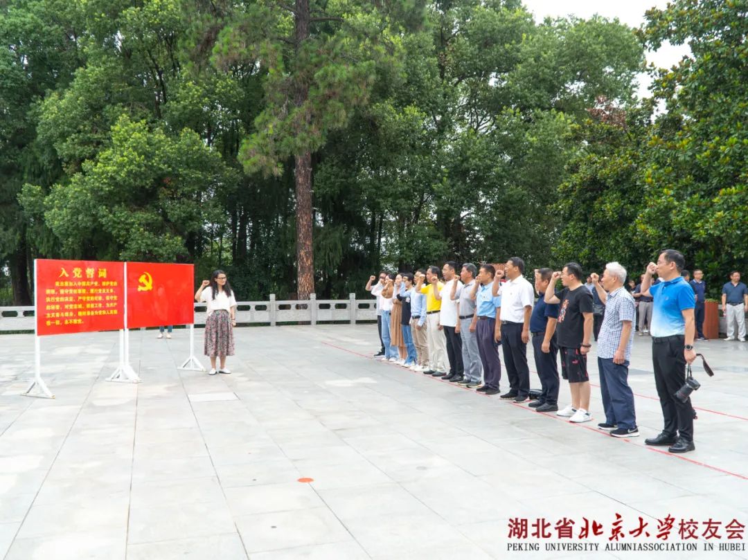 为庆祝中国共产党建立102周年,2023年7月1日,湖北省北京大学校友会(以下简称:湖北校友会)党支部组织近三十位北大校友,赴湖北麻城革命烈士陵园。本次活动取得热烈回响,上有年近八旬的五位老校友,下至九零后的年轻校友,不同世代的北大人共襄盛举。湖北校友会副会长、党支部书记杨裕利,会长刘萌,秘书长杨玲莉,监事长韩晓光等参加本次活动。活动由校友会理事、党支部委员阮媛组织。