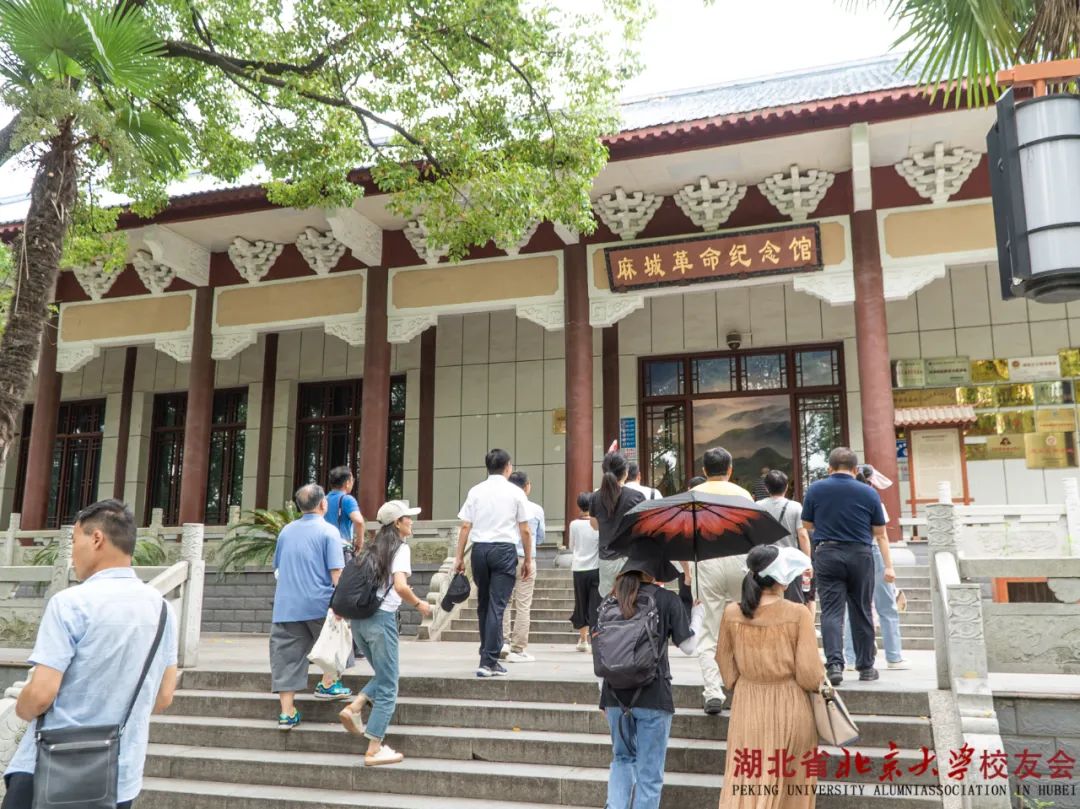 首先,校友们登上烈士陵园台阶,站立在纪念碑前,在党旗和誓词前庄严的举起右手,齐声重温入党誓词。其后,一行人来到麻城革命纪念馆。纪念馆用文字、照片、图片和文物等展现手法,收录了76位烈士、44位麻城籍将军、86位英模等代表人物的资料,展现了麻城人民的革命斗争史和建设新麻城的艰辛历程。