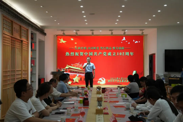 2023年6月29日,晋中北京大学校友会主办“红歌传唱、诗词颂党、笃行致远、惟实励新”主题活动,30余人参与活动,共同庆祝中国共产党成立102周年。本次活动的协办单位包括山西省商业联合会及企业服务分会、电子商务委员会,晋中市通用航空协会、金科山西智慧科技城企业服务中心、山西通用航空产业发展研究院、喻家六合拳、晋中市易学研究会、晋中市心理咨询师协会;承办单位是财行天下企业服务基地。