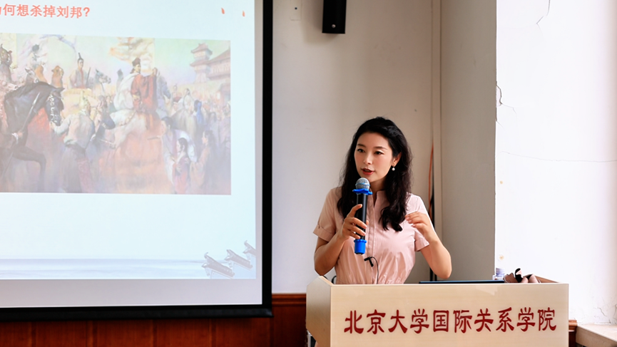接着,何叶紫详细梳理了鸿门宴的背景故事,包括刘邦和项羽起兵的经过、楚怀王与项羽以及宋义与项羽之间的权力斗争,以及怀王“关中之约”背后复杂的政治考量,并对项伯“夜奔”替刘邦求情、项羽答应放过刘邦以及范增坚持除掉刘邦的行为做出了不同于主流观点的更有说服力的解读。