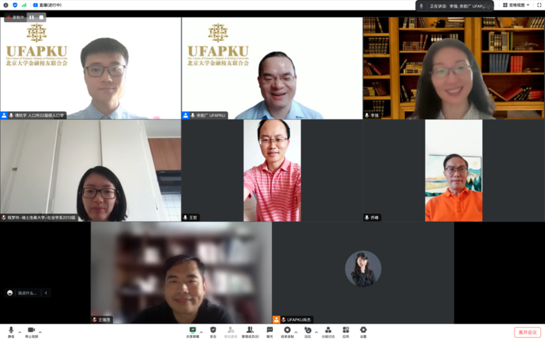 “未名深度思考”首期活动受到广泛关注、得到高度评价,一千余人通过“燕缘财经”视频号观看了本场直播。北大金融校友联合会向本期主讲嘉宾李强校友颁发了感谢状,对李强校友的专业分享表示衷心感谢。各位与谈校友在线合影留念。
