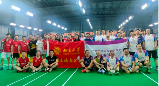 2023年5月27日,北大、清华两校在湘校友会羽毛球队在长沙handsome羽毛球馆举办友谊赛。