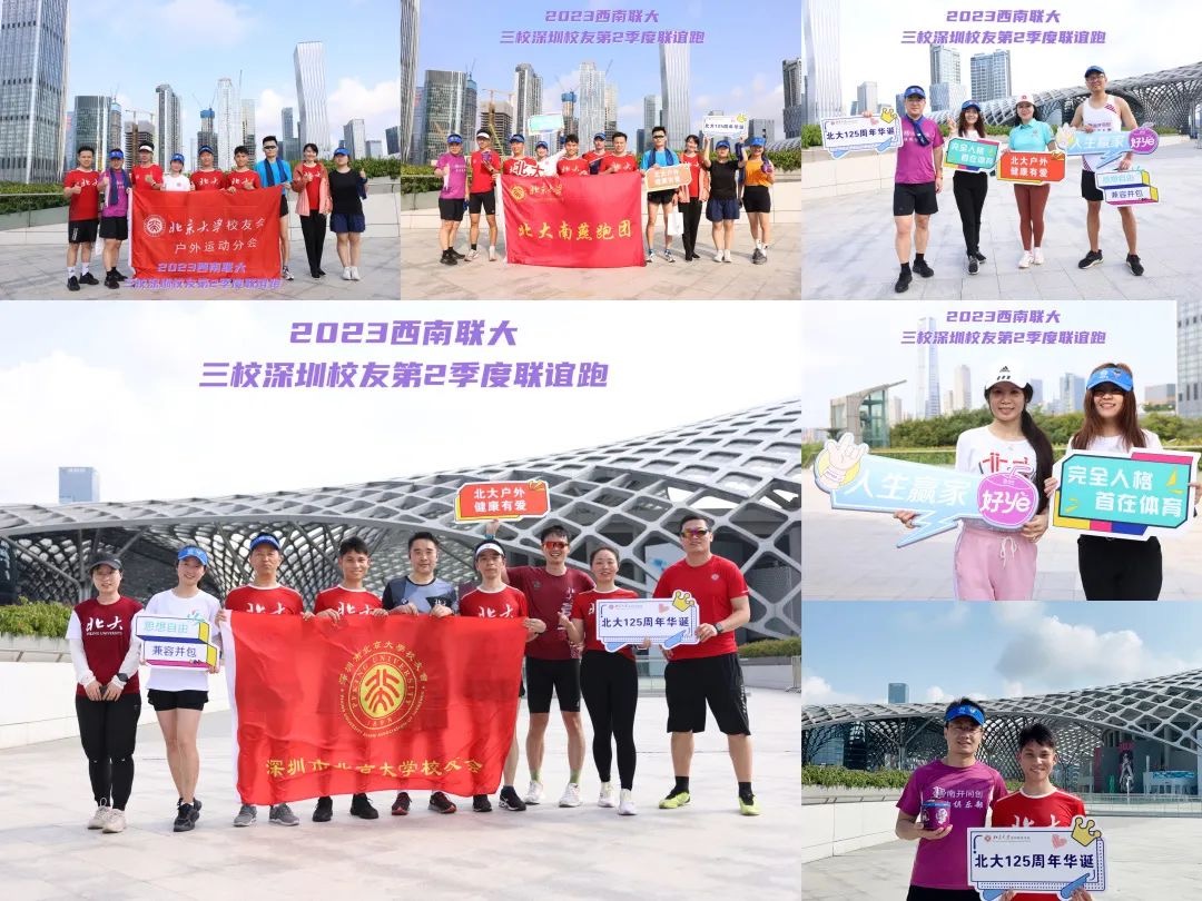 北大户外,健康有爱。深圳市北京大学校友会户外运动分会积极组织深圳校友参加西南联大三校联谊跑活动,通过跑步的方式,继承和发扬“完全人格,首在体育”的精神,团结凝聚在深北大校友,强体育之健全人格,扬跑步之风清气正,正社会之向上向善风气,在中国文体活动领域,充分展现北大人刚毅正直,奋发向上的精神风貌。