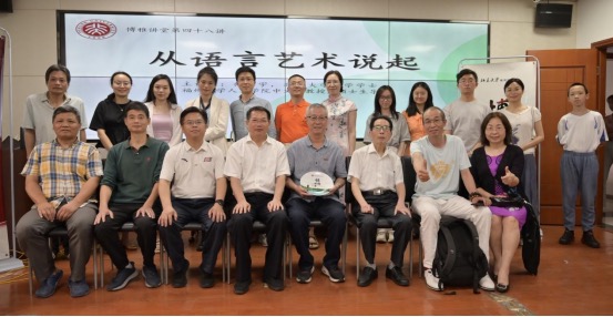 绿槐高柳咽新蝉,碧纱窗下水沈烟。2023年5月27日上午,博雅讲堂第四十八讲《从语言艺术讲起》在福州仲裁委二楼报告厅开讲。主讲嘉宾施晓宇系北京大学中文系校友,曾任《福建文学》杂志副主编,现任福州大学人文学院中文系教授(一级作家),硕士生导师,中国作家协会会员,福建省阅读学会副会长,福建省十大文化名人。讲座由法学院校友童建炫、苏玉婷主持,八十多位校友慕名而来,讲座现场一座难求。