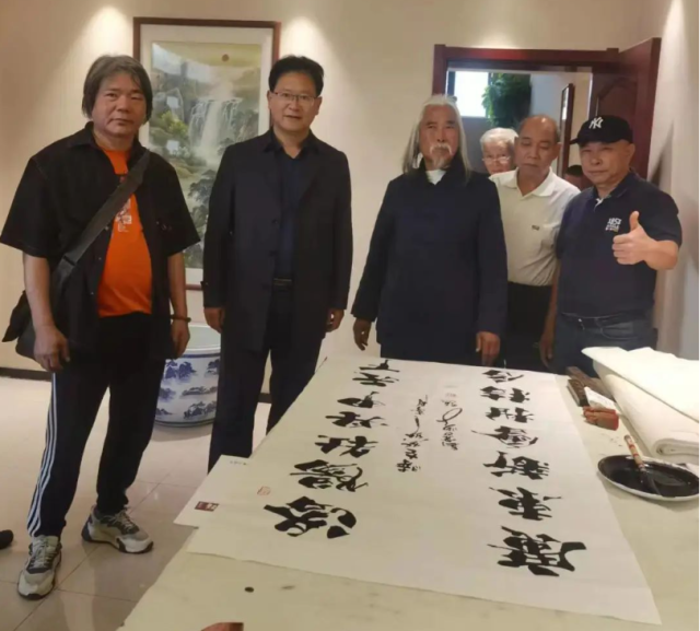 洛阳日报社原社长、洛阳范仲淹研究会会长、洛阳洛神文化研究院院长王建立致欢迎辞,介绍了洛阳作为十三朝古都悠久且辉煌的历史文化,以及洛神文化研究院发展情况,并向广东客人赠送《洛神赋》。李悦忠代表广东书画艺术界与会嘉宾致辞,表示很高兴首次来洛书画交流,对岭南画派进行了详细介绍,并向洛阳方面与会嘉宾回赠毛笔。