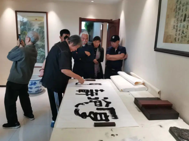 此次书画交流座谈会由洛阳校友会副秘书长郭杰主持。参加活动的洛阳嘉宾有:洛阳市西工区人大常委会原主任、洛阳文化产业研究院名誉院长、河南省文创意研究院专家委员会委员、河南省民间艺术家协会会长、洛阳金谷印社创始人贾建民;中国美术家协会会员、中国书法家协会会员,河南开明书画院副院长,洛阳开明书画院院长,中原美术学院客座教授、北大洛阳校友会理事索铁生;国家一级美术师、首博书画院副院长、中华福文化研究会会长、河大洛阳校友会文艺交流部部长吴大崴;中国书法家协会会员、洛阳市书协副主席兼秘书长张宏图,中国当代实力派书法家、国家一级书法师刘书学。参加活动的广东嘉宾有:江门市新会区文广新局原局长、广东省书协会员李悦忠;中国书法家协会会员李卓见;江门市新会百石居书画社社长苏柏旺。参加活动的洛阳校友会会员有:副会长兼秘书长刘晓鹏,副会长吴进卿,副秘书长姚瑜、郭杰、陈巍,会员胡站意。