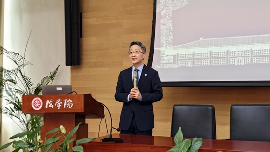 随后,郭雳院长致欢迎辞。他代表全院师生欢迎各位校友回家,并向各位校友介绍了法学院近年来的发展情况。他表示,法学院在读的年轻一代拥有很大的潜力,他们正在校友们的关心下茁壮成长,学院也在校友们的支持下蓬勃发展;77、78级本科校友对学院有着深厚的感情,大家走了很远的路来到北大法学院,亦走了很久的路取得今天的成就,他代表学院诚挚祝福各位校友。